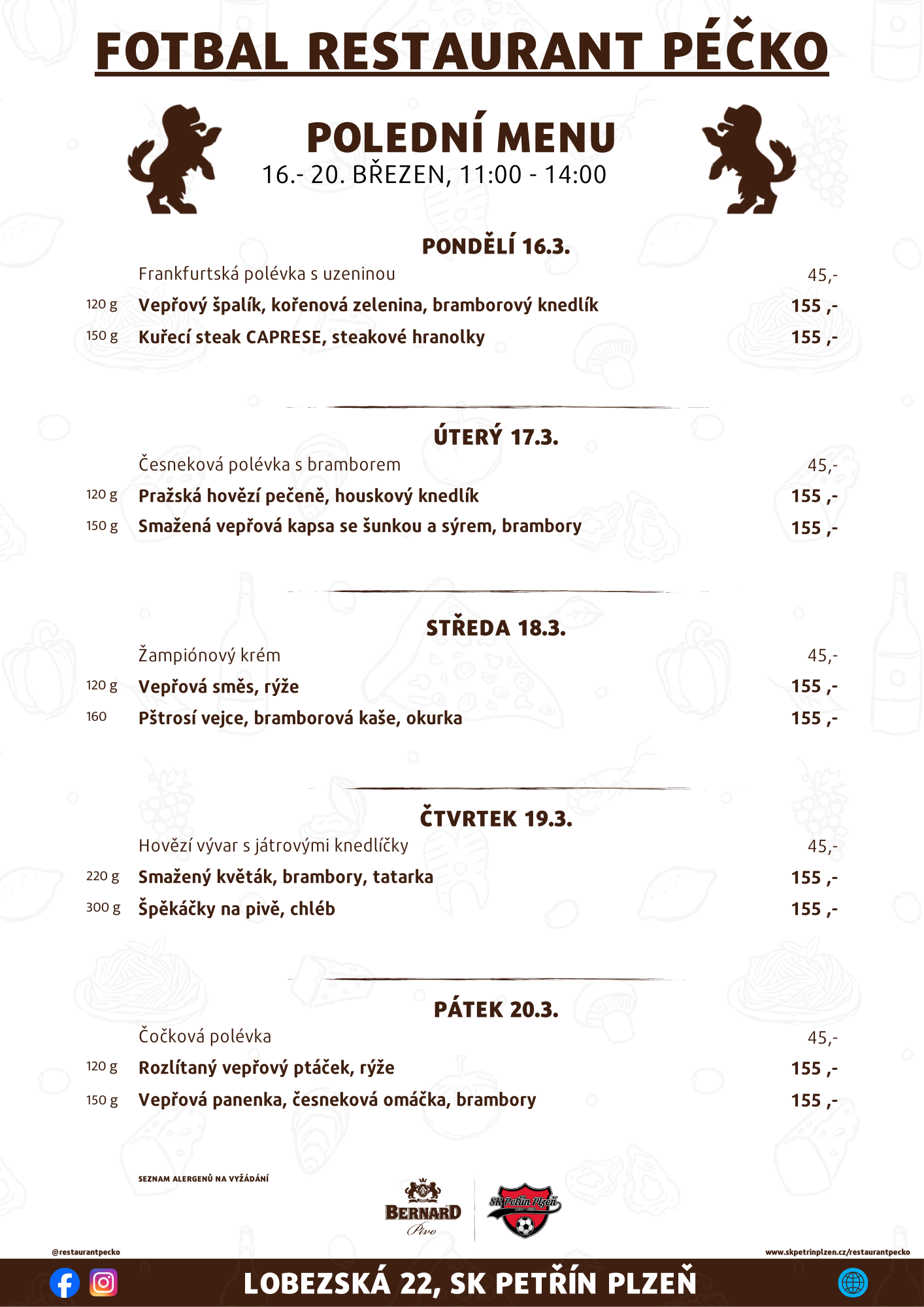 POLEDNÍ MENU 16. - 20. BŘEZNA, 11:00 - 14:00